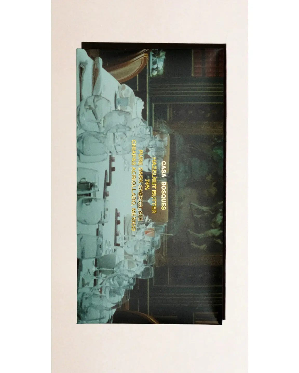 A decadent 74% single-origin cacao bar blended with hazelnut butter. Toasted Oregon hazelnuts, dark chocolate, and dates come together in a smooth, velvety finish — rich, warm, and deeply satisfying.